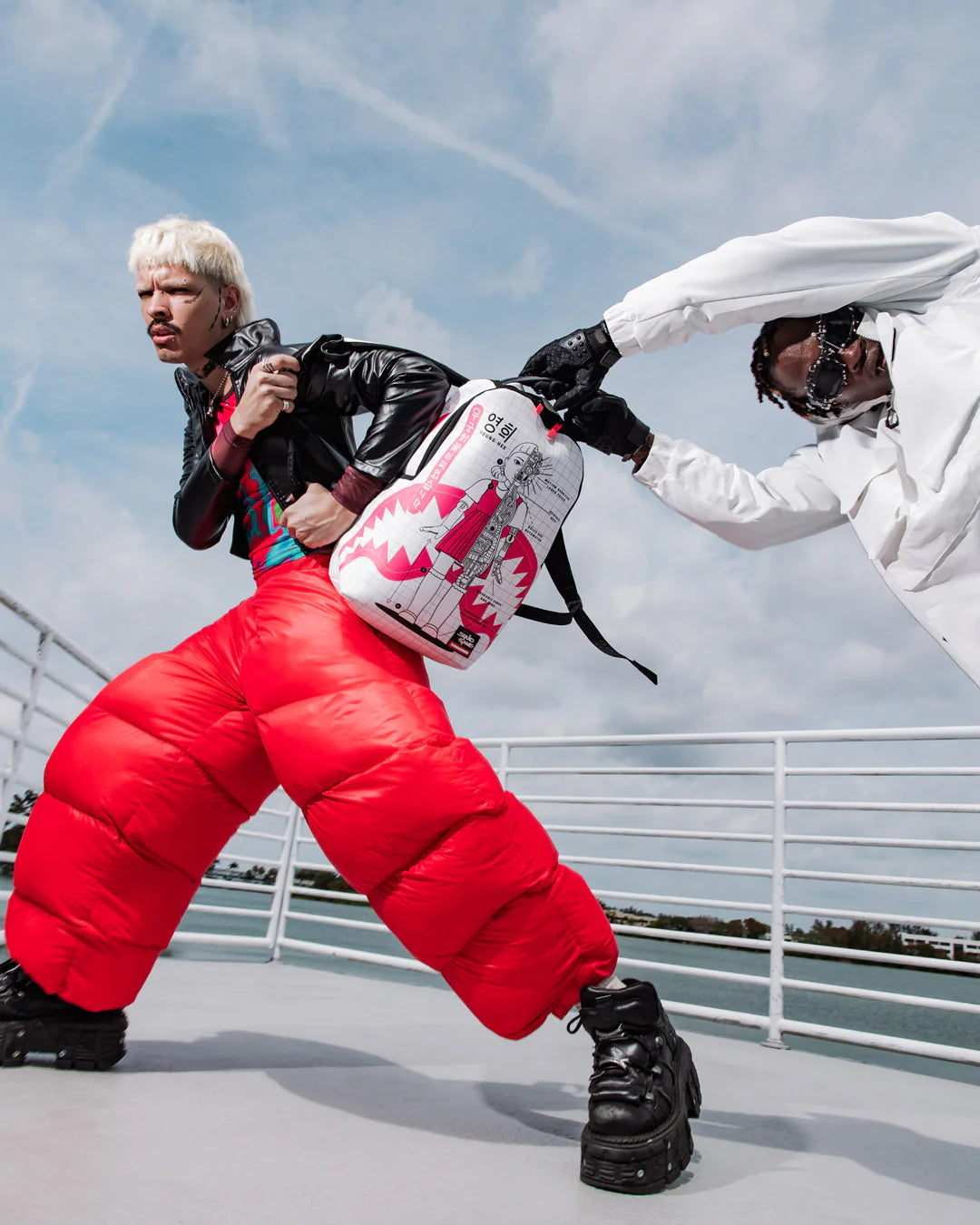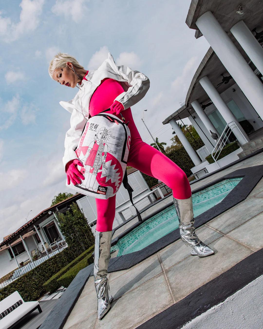 Introducing the Sprayground's Squid Game Collab Robot Girl Backpack, a striking fusion of art and functionality that seamlessly integrates into any wardrobe. Elevate your style with this unique backpack.