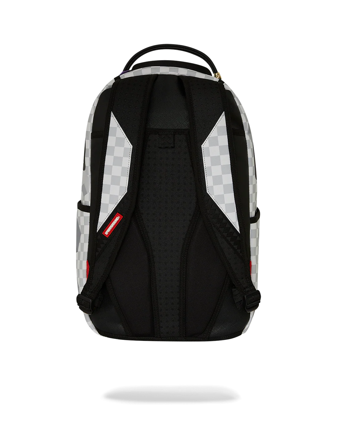 - Dimensions: 18" x 6" x 11.5" • Front zipper pocket • Side pockets • Zippered Stash pocket • Separate velour sunglass compartment • Ergonomic mesh back padding • Adjustable Straps for custom sizing • Gold zippers with metal hardware • Metal "Sprayground Authentic" badge • Slide through back sleeve connects to carry-on luggage to free your hands