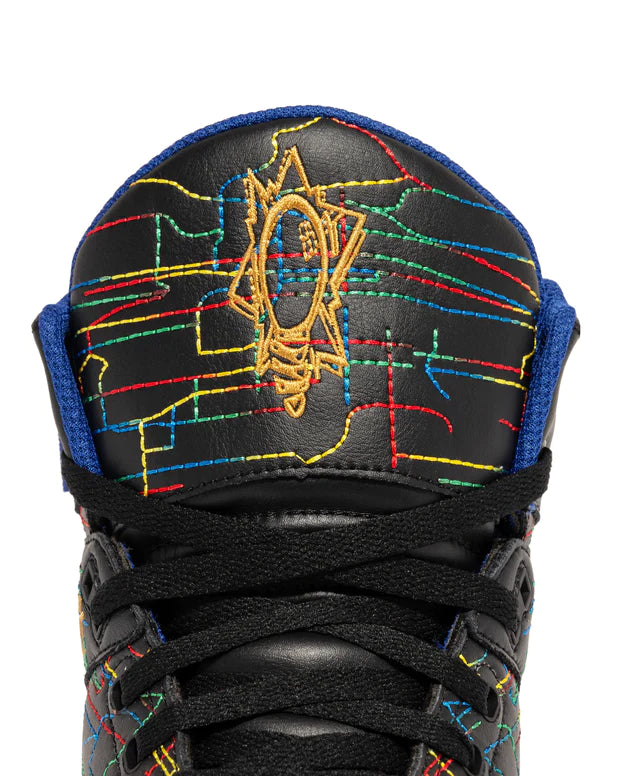 The 33 HI features a black leather upper with royal blue accenting and sits atop a gum sole but what really sets this shoe apart is that it features a colorful stitched pattern all throughout the shoe to represent the road map of the United States featured on the album cover. As Common explained to us the reason he had a road map of the United States on the album cover was because “I had cats from the East Coast on here and cats from the West Coast, that’s what Hip Hop just was at that time and as a Chicago artist I wanted to say hey, can I get a piece of this? So that's what Can I Borrow a Dollar? Was”.