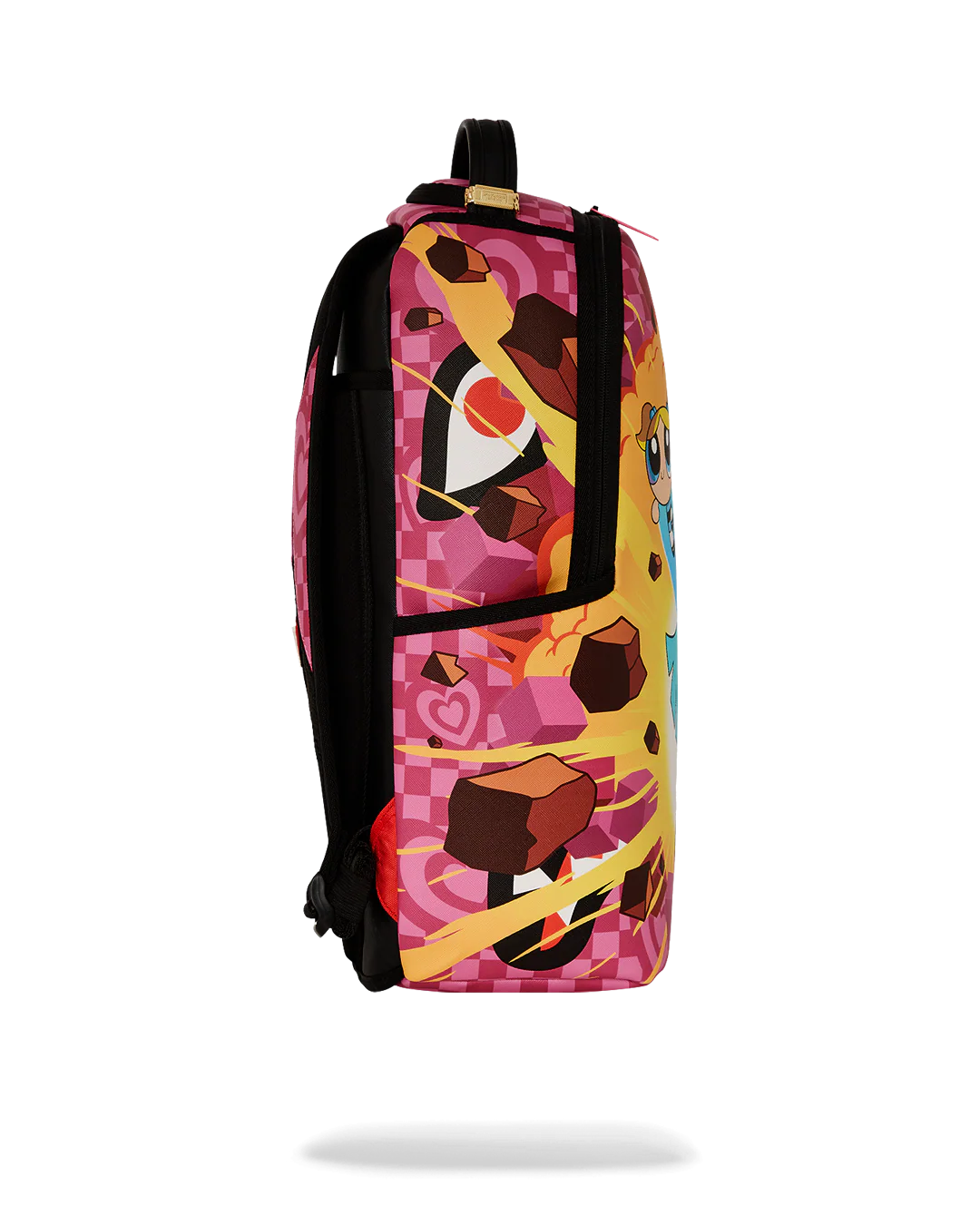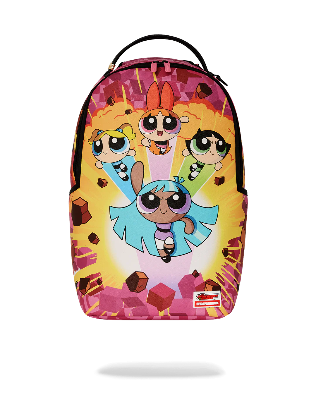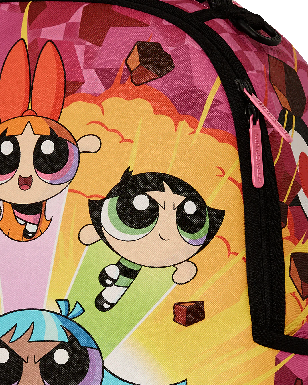 Introducing the Sprayground's Powerpuff Bustin Thru DLXSV Backpack, a striking fusion of art and functionality that seamlessly integrates into any wardrobe. Elevate your style with this unique backpack.