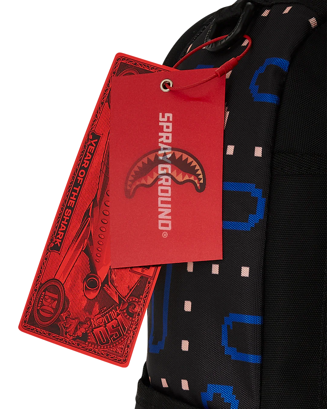 Introducing the Sprayground's Pacman Ghost Gang Sharkmouth Backpack, a striking fusion of art and functionality that seamlessly integrates into any wardrobe. Elevate your style with this unique backpack.