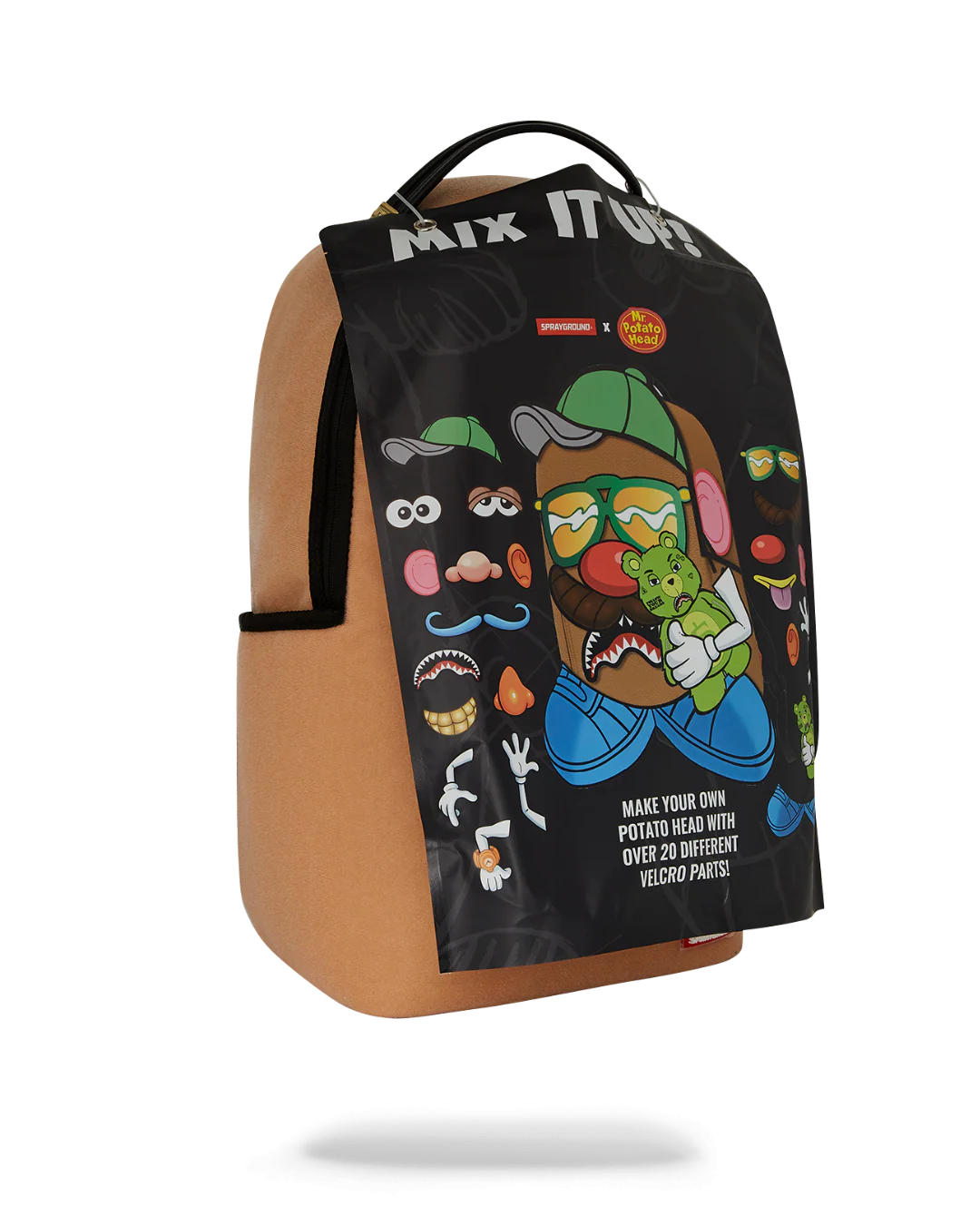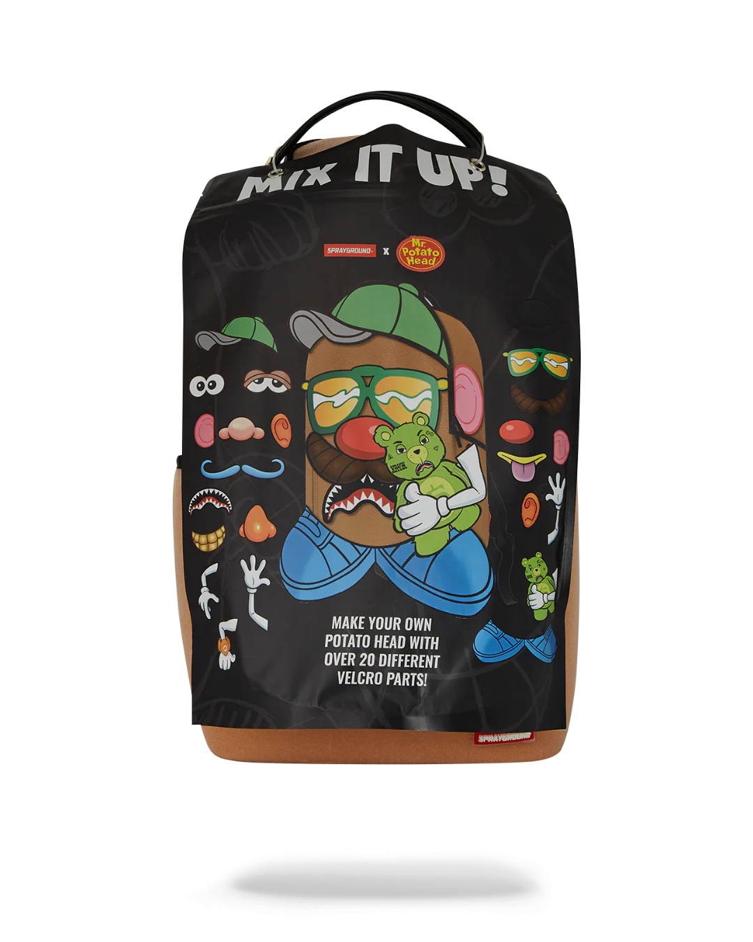Introducing the Sprayground's Mr. Potato Head Velcro Patch Mix-It-Up DLXSV Backpack, a striking fusion of art and functionality that seamlessly integrates into any wardrobe. Elevate your style with this unique backpack.