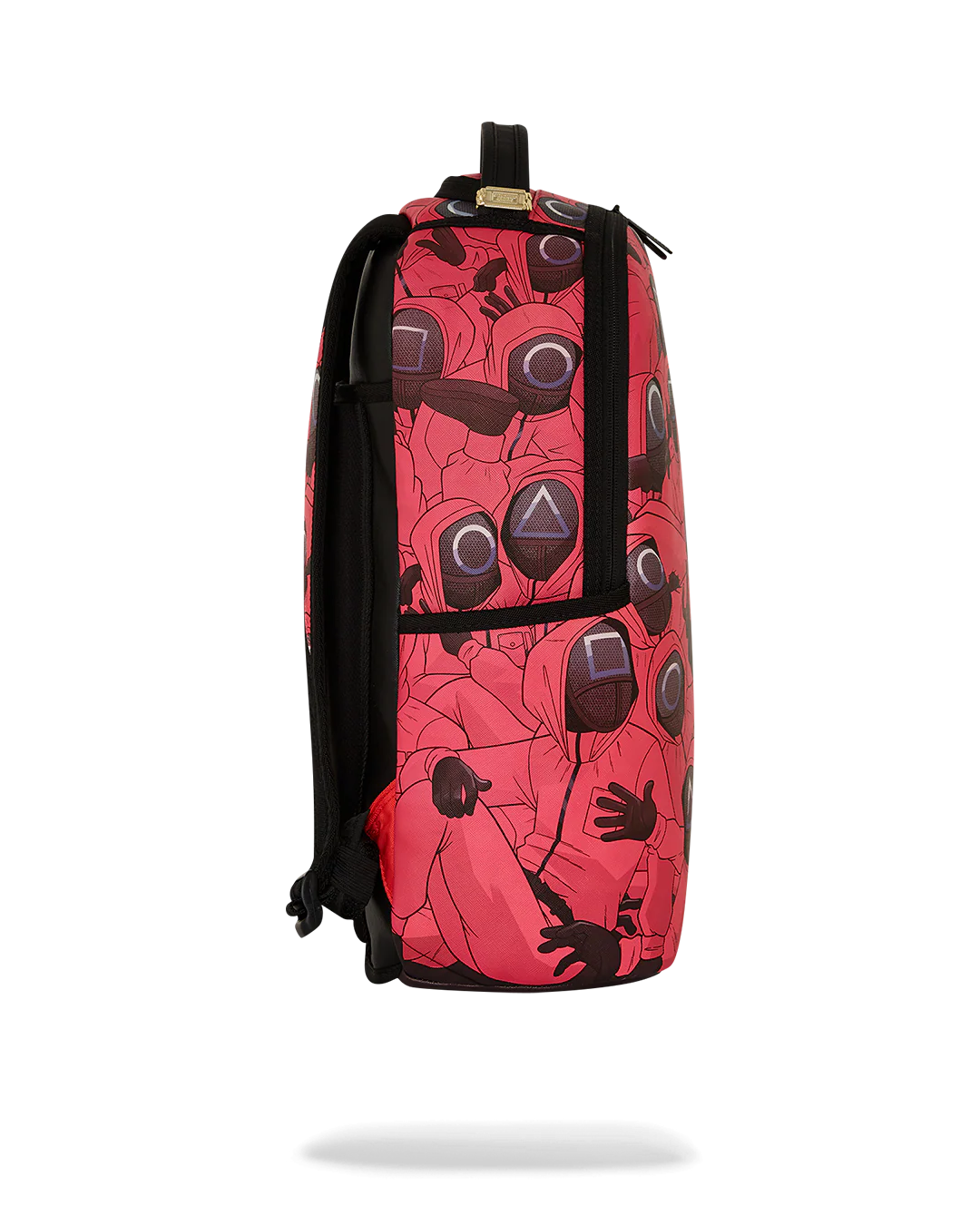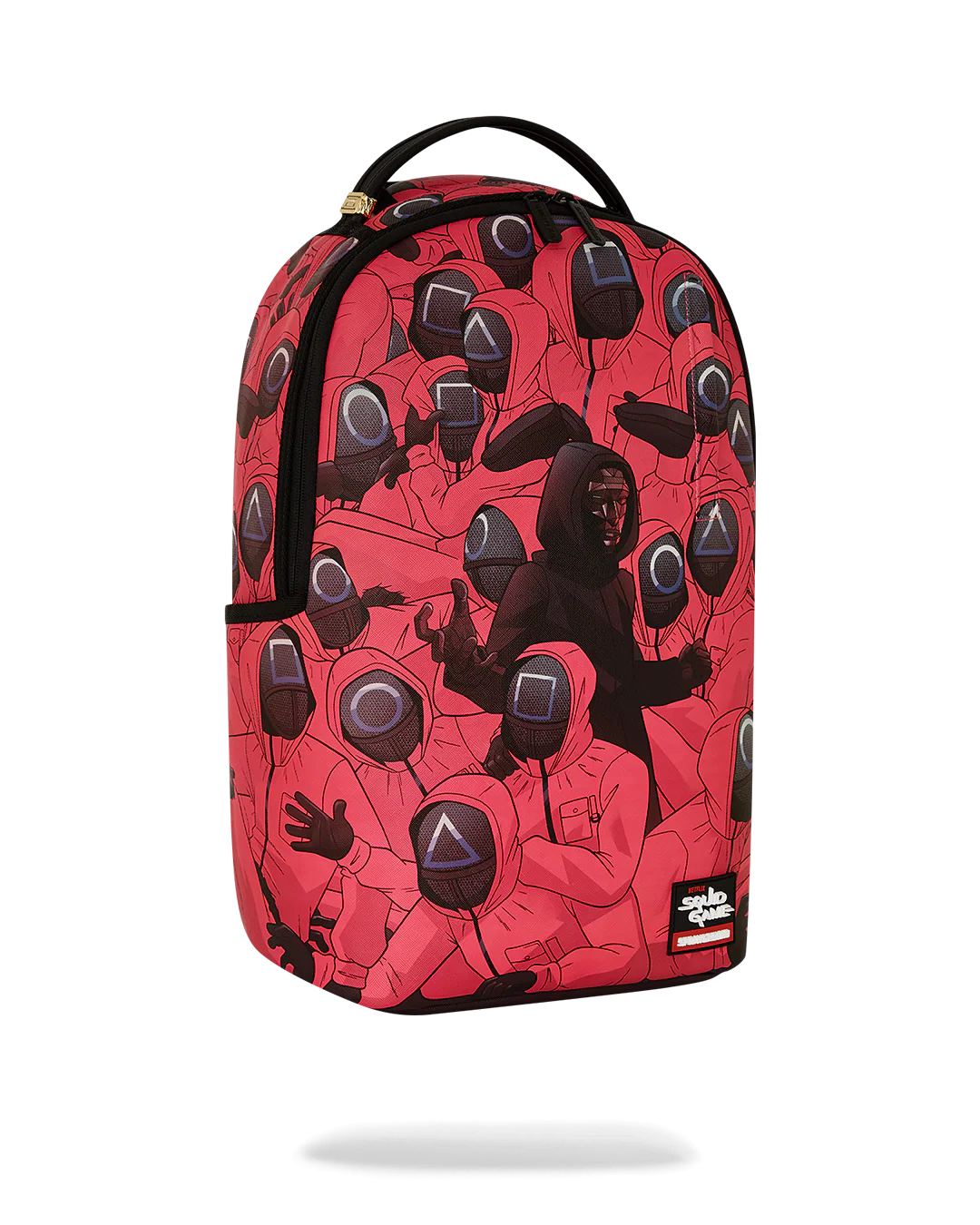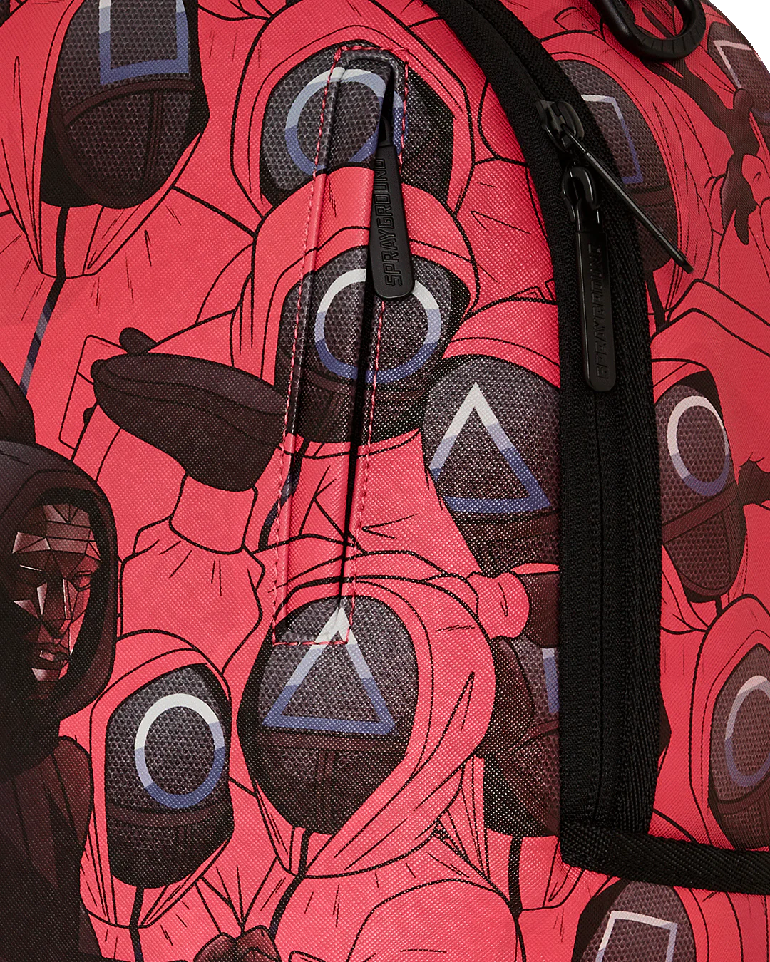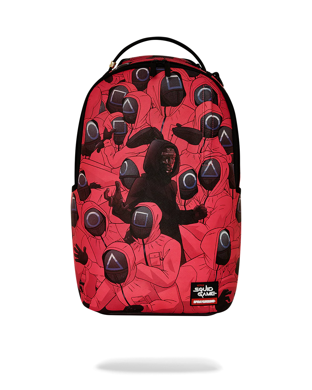 Introducing the Sprayground's Squid Game Collab Front Man Crew Backpack, a striking fusion of art and functionality that seamlessly integrates into any wardrobe. Elevate your style with this unique backpack.