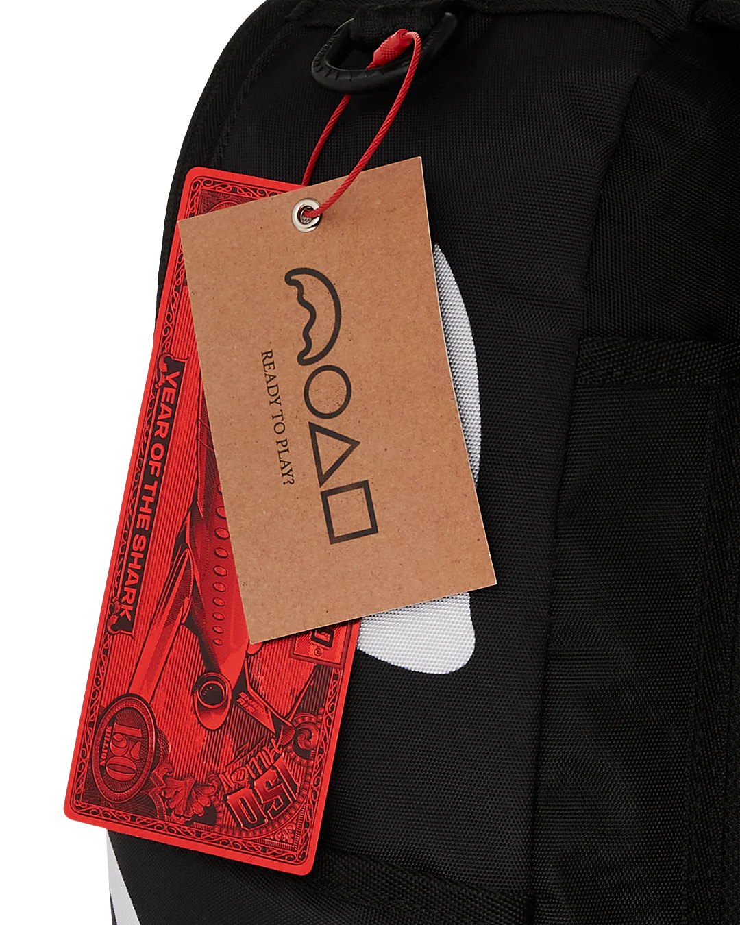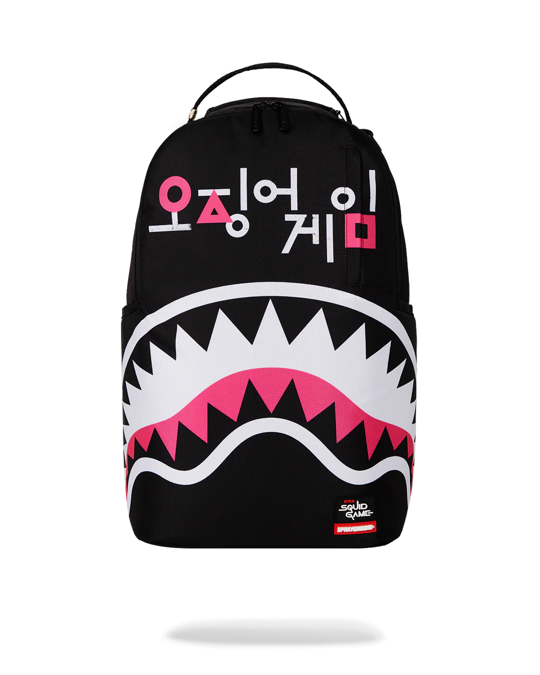 Introducing the Sprayground's Squid Game Collab Logo Lockup Backpack, a striking fusion of art and functionality that seamlessly integrates into any wardrobe. Elevate your style with this unique backpack.