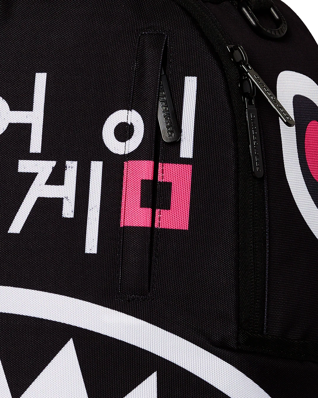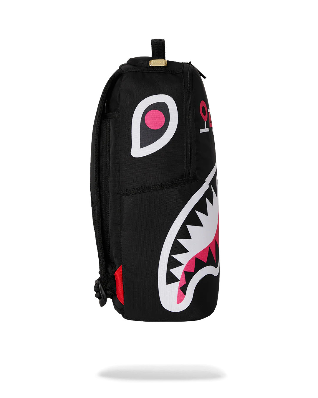 - Dimensions: 18" x 6" x 11.5" • Front zipper pocket • Side pockets • Zippered Stash pocket • Separate velour sunglass compartment • Ergonomic mesh back padding • Adjustable Straps for custom sizing • Gold zippers with metal hardware • Metal "Sprayground Authentic" badge • Slide through back sleeve connects to carry-on luggage to free your hands